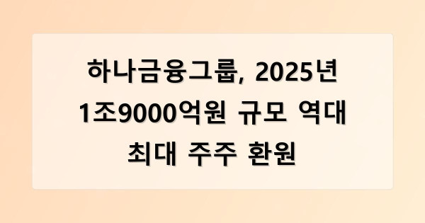 하나금융그룹, 2025년 1조9000억원 규모 역대 최대 주주 환원