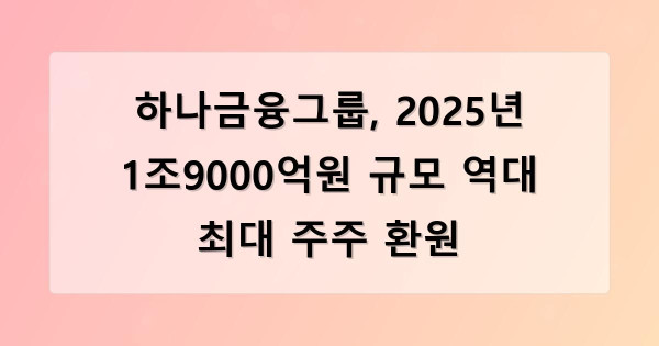 하나금융그룹, 2025년 1조9000억원 규모 역대 최대 주주 환원